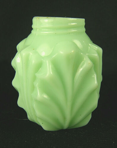 Antique Victorian Green Opal Milk Glass Shaker - Leaf Palm Pattern