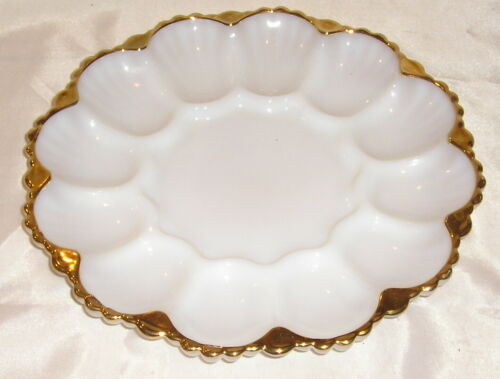 Title (ebay affiliate link): Vintage 10" White Milk Glass Deviled Egg / Oyster Plate - Nice Gold Edge
