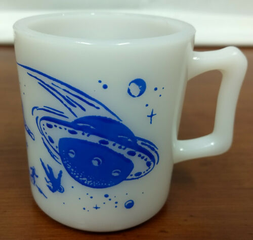 Title (ebay affiliate link): Mid Century MILK GLASS Blue Astronaut Hazel Atlas Rocket Ship Coffee SPACE MUG