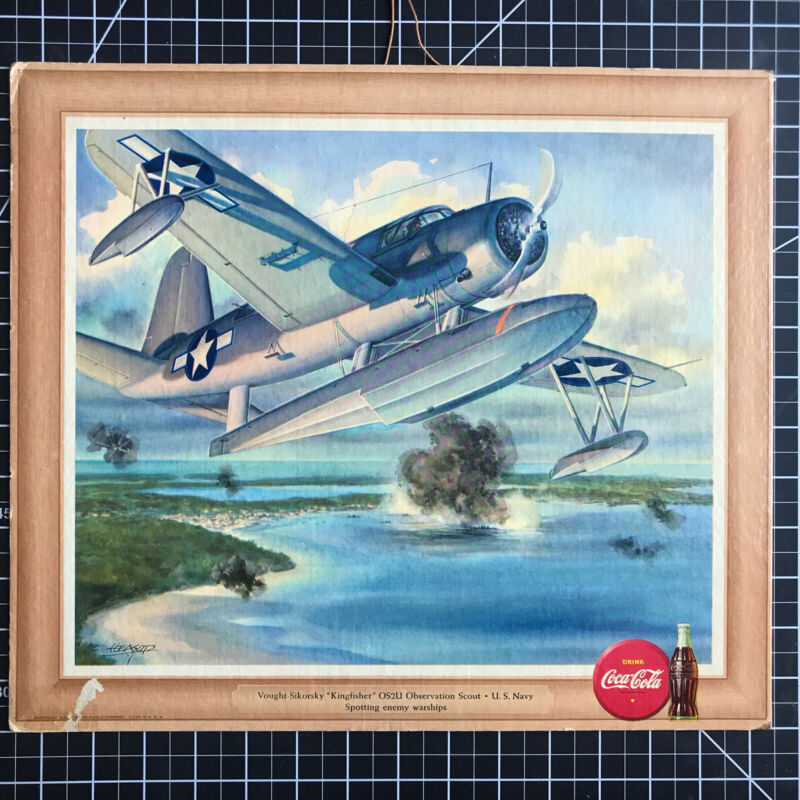 Title (ebay affiliate link): Coca Cola Vintage 1943 World War II Airplane Cardboard Hanger Vought Kingfisher