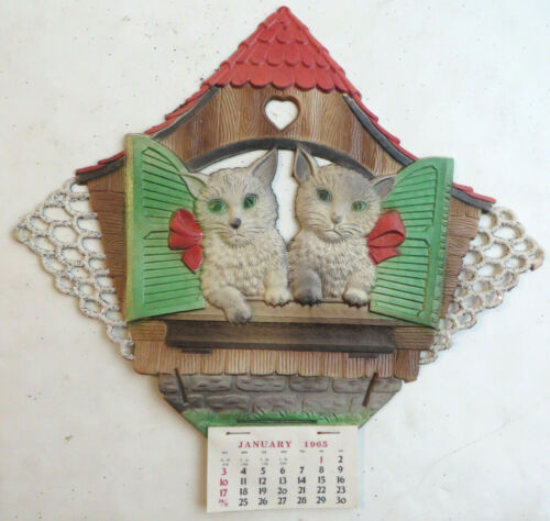 1965 Calendar Western Germany House Cats Embossed Die Cut Cardboard