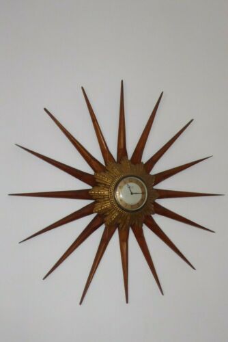Title (ebay affiliate link): SMITHS SUNBURST STARBURST GOLD WALL CLOCK WITH REMOVEABLE WOODEN SURROUND