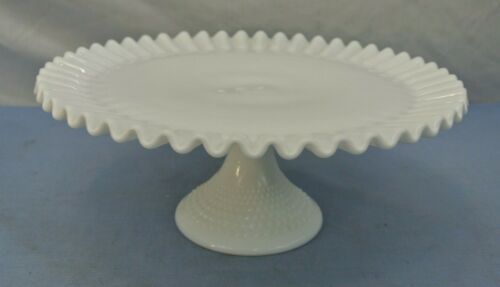 Title (ebay affiliate link): BEAUTIFUL RUFFLED HOBNAIL MILK GLASS CAKE PLATE PLATTER STAND