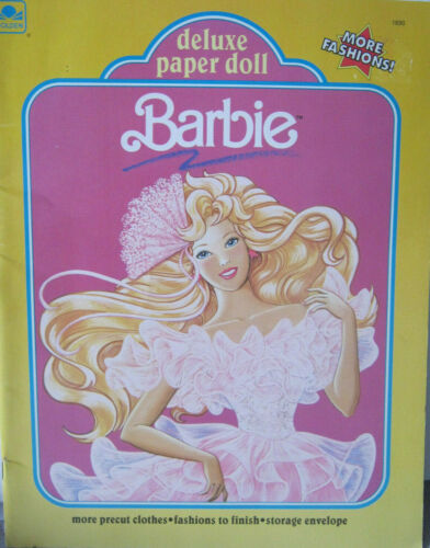 Title (ebay affiliate link): NEW UNCUT BARBIE PAPER DOLL ~ 1990 GOLDEN ~ BARBIE FEATURING YOU COLOR FASHIONS