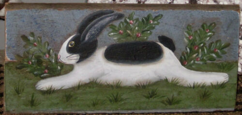 Title (ebay affiliate link): *~*PRIMITIVE*~* HP FOLK ART PRIM BLACK & WHITE BUNNY *~* RECLAIMED WOOD