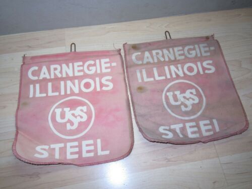 2 Vtg USS Steel & Carnegie Illinois Cloth Caution banners bridges Skyscrapers