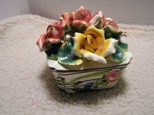 Vintage Capodimonte Italy Porcelain Roses Covered Dish