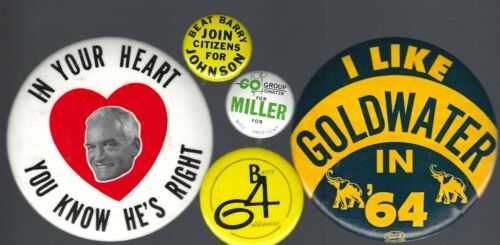 Title (ebay affiliate link): 1964 BARRY GOLDWATER & WILLIAM BILL MILLER POLITICAL CAMPAIGN BUTTON GROUP C