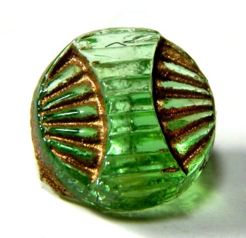 SWEET LITTLE 1930''S GREEN DEPRESSION GLASS BUTTON w/GOLD DECO DESIGN