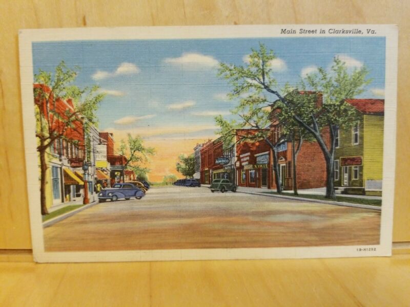 Title (ebay affiliate link): C14) Postcard Main Street Clarksville Va vintage auto AMOCO sign Coca Cola