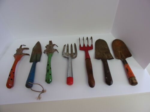 LOT OF 7 OLD VINTAGE GARDEN HAND TOOLS