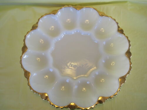 Title (ebay affiliate link): VINTAGE MILK GLASS DEVILED EGG PLATE WITH GOLD TRIM