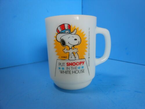 Title (ebay affiliate link): 1980 Anchor Hocking Put Snoopy in The White House Milk Glass Mug/Cup Collectors