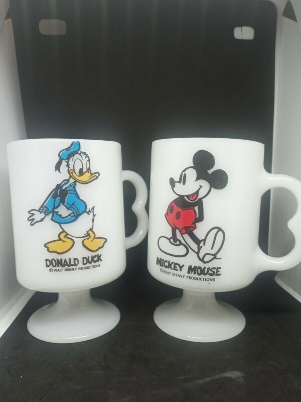 Title (ebay affiliate link): Vintage Mickey Mouse & Donald Duck White Milk Glass Pedestal Footed Mug Cup