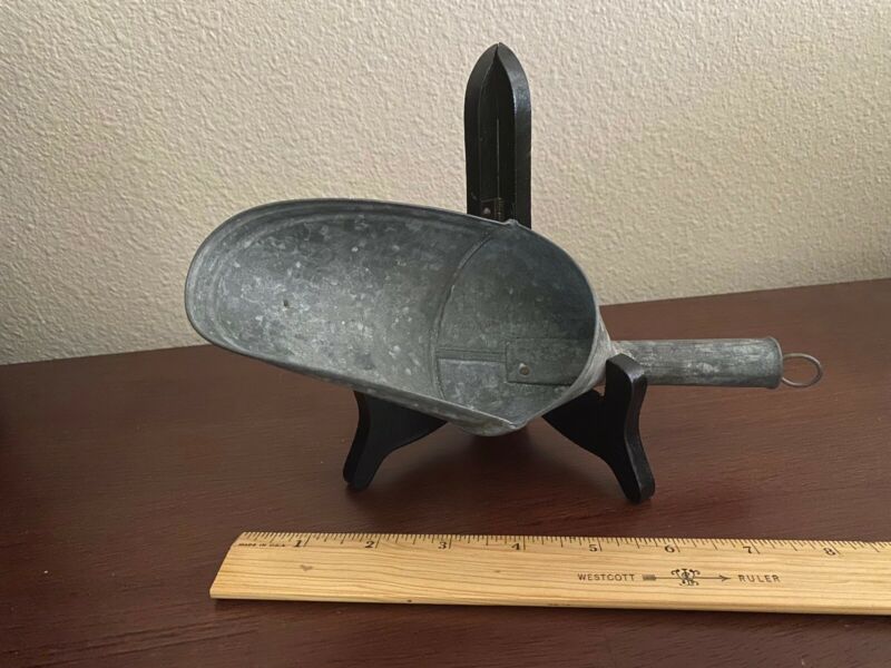Vintage 1940s Galvanized Tin Old Store Grain Scoop Primitive Cabin Farmhouse