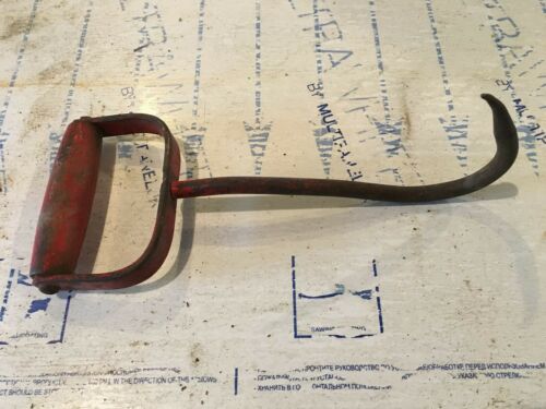 Old Primitive Wood Red Wood Handled Iron Hay Hook Farm Tool