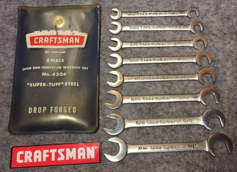 Title (ebay affiliate link): Vintage Craftsman 8 Pc Offset Open-End Ignition Wrench Set w/ Pouch #4306 (USA)