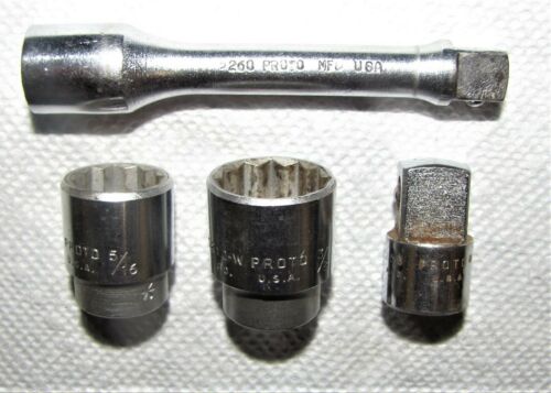 Title (ebay affiliate link): Proto Tool 3/8 Drive Sockets(5/16 - 3/8), 3/8 to 1/2 Adapter, 3 1/2" Extension