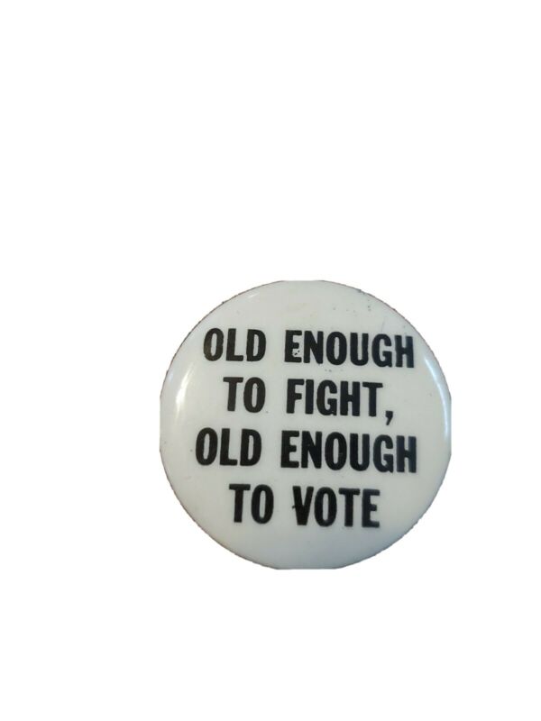 Title (ebay affiliate link): Vtg 60s Vietnam War Era BUTTON PIN BACK Protest OLD ENOUGH TO FIGHT / VOTE