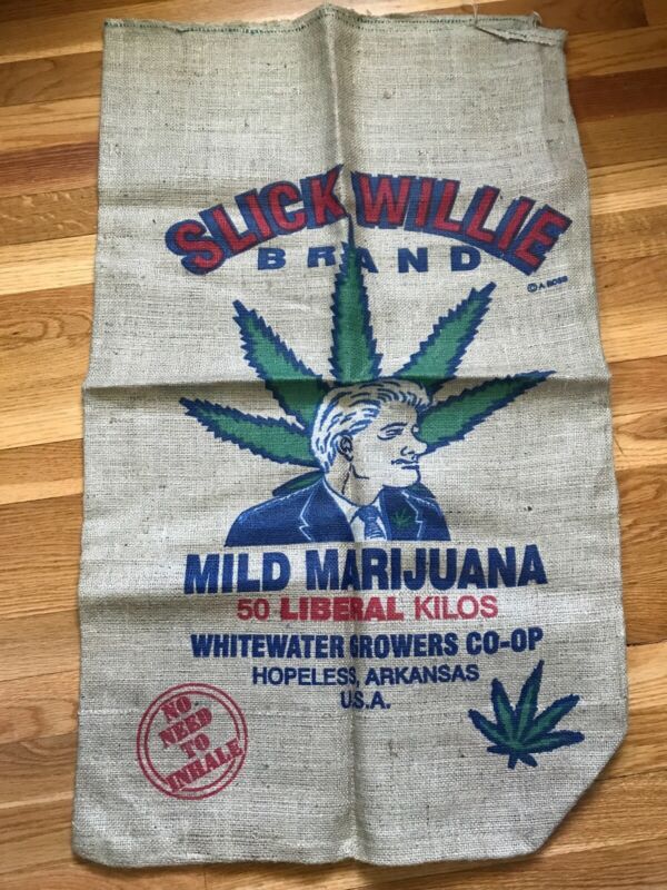 Title (ebay affiliate link): Slick Willie Brand Mild Marijuana 50 Liberal Kilos Burlap Sack Bill Clinton