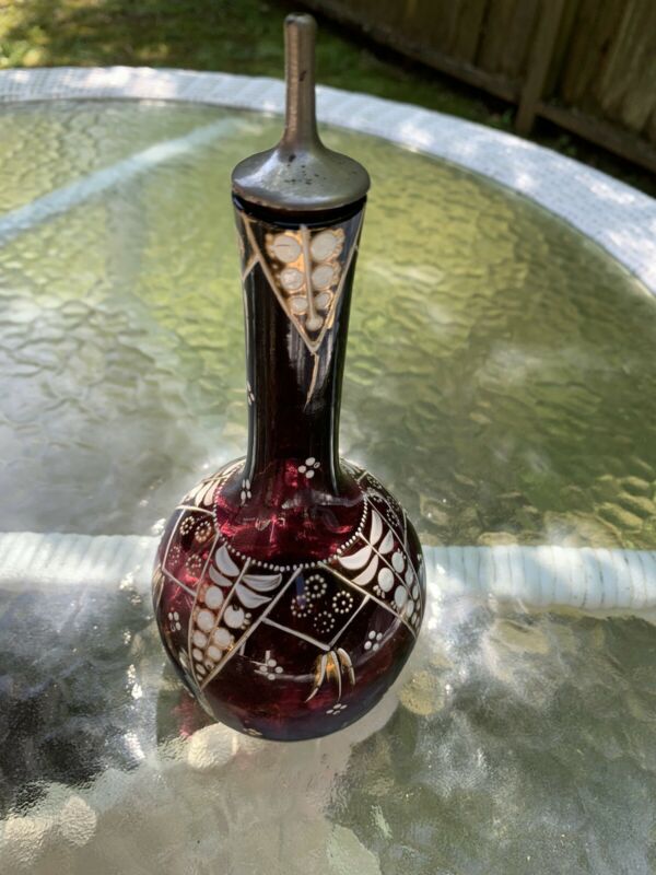 Beautiful Purple Hand Painted Barber Bottle Estate Of Linda And John Flippen