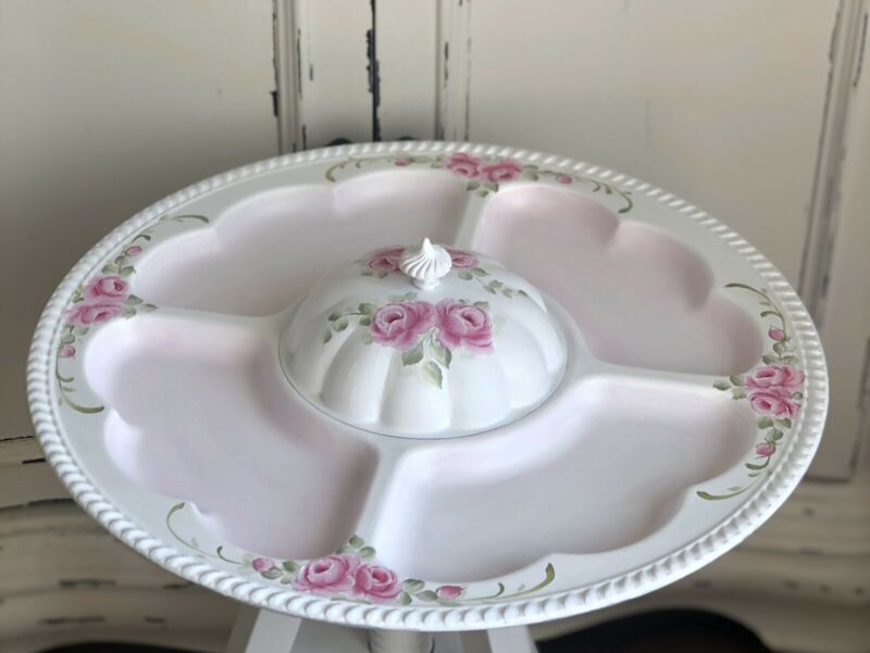 Metal Lazy Susan Dessert / Trinket Tray Stand Shabby Cottage Chic Pink HP Roses