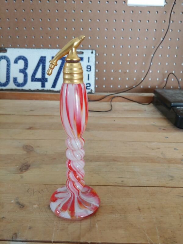 ANTIQUE GERMAN ART DECO ATOMIZER PERFUME SWIRLED ORANGE WHITE