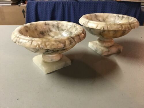 Antique Decorative Alabaster Miniature Birdbath Pedestal Bowls
