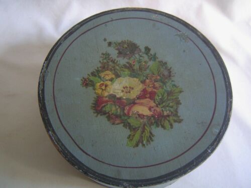 VINTAGE ROUND WOODEN SHAKER STYLE BOX HAND PAINTED FLOWERS 6 1/2"