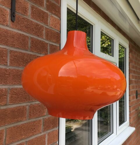 Title (ebay affiliate link): Retro Scandinavian large orange cased glass ceiling lamp shade, c. 1960s.