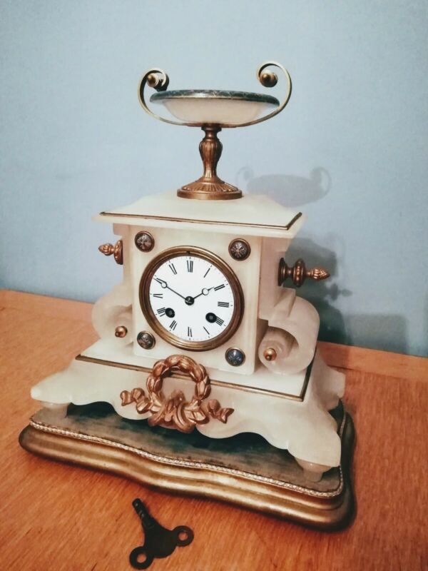 Title (ebay affiliate link): Antique Alabaster French Count Wheel Strike Mantel Clock Circa 1855