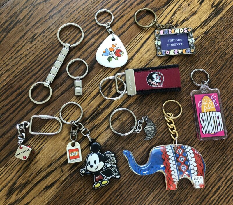 Title (ebay affiliate link): Vintage Key Chain Lot Junk Drawer Elephant FSU Dice Disney LEGO Friends