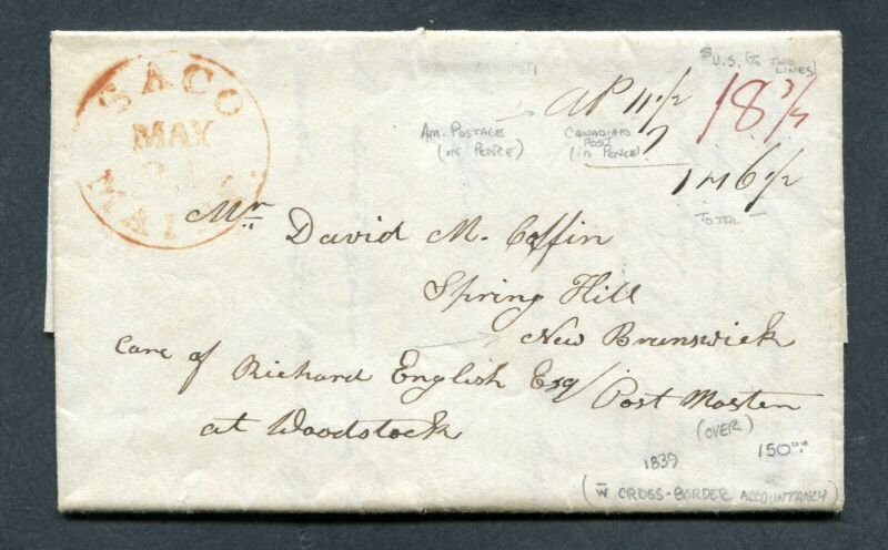 Title (ebay affiliate link): 1839 Saco Maine to Spring Hill, New Brunswick, Canada via Woodstock NB contents