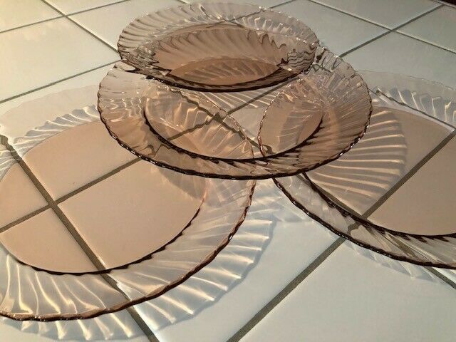 Title (ebay affiliate link): Vintage pink depression glass salad plates set of 4 excellent condition