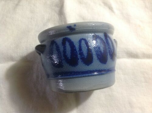 Rare Old Cobalt Blue Mini Decor Stoneware Salt Glaze Handled Crock Miniature 200