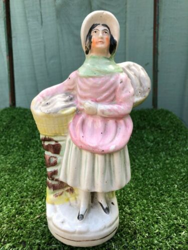 Title (ebay affiliate link): SUPERB 19thC STAFFORDSHIRE FEMALE FIGURINE WITH BASKETS OF FISH c1880s