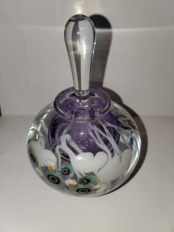 Title (ebay affiliate link): VINTAGE SIGNED MARY ANGUS LAVENDER/ WHITE/CLEAR PERFUME BOTTLE HAND BLOWN GLASS