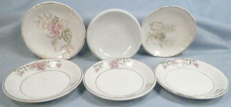 6 Antique Butter Pats Flowers Porcelain Pottery Ironstone Assorted As Is