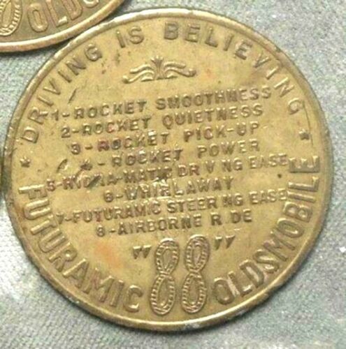 Title (ebay affiliate link): 1949-50 MEDAL TOKEN..OLDSMOBILE FUTURAMIC 88 - ROCKET POWER, SEEING IS BELIEVING