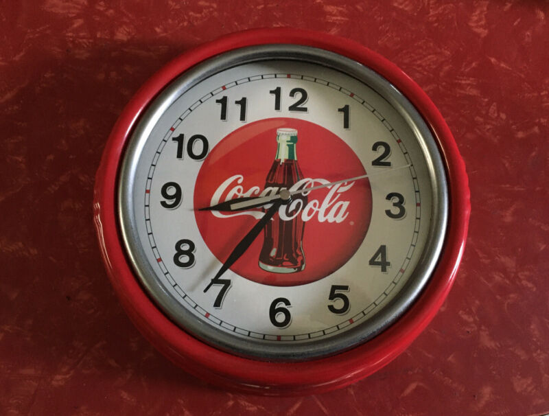 Title (ebay affiliate link): Vintage Style Coca Cola brand Wall Clock metal case glass lens