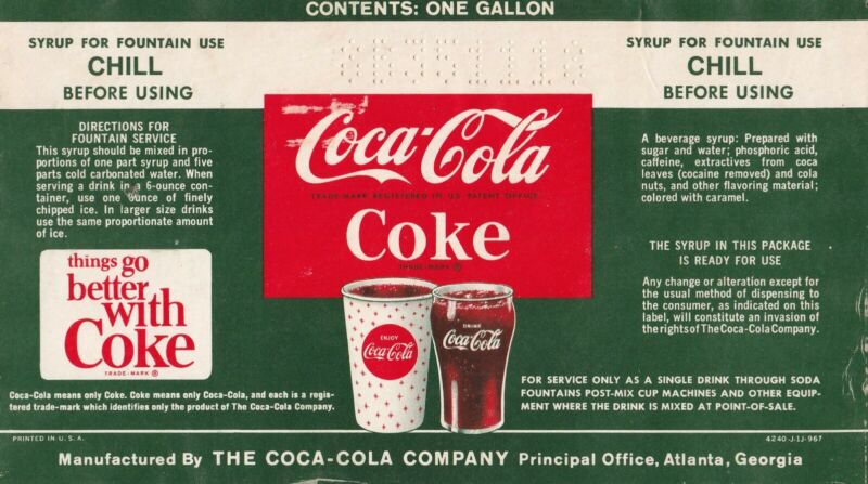 Title (ebay affiliate link): Vintage Unused Coca Cola One Gallon Syrup Label Perforated Numbered