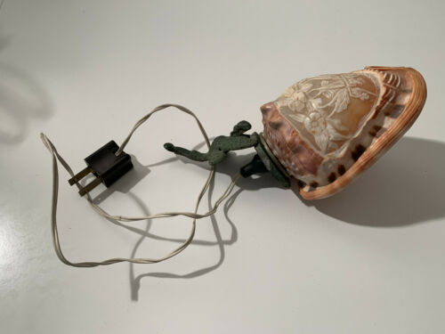 Title (ebay affiliate link): Vintage Hand Carved Conch Shell Lamp 3 Dancing Nymphs Night Light DAMAGED BASE