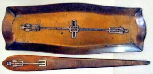 Vintage Mission Silver over Copper Pen Tray & Letter Opener Set