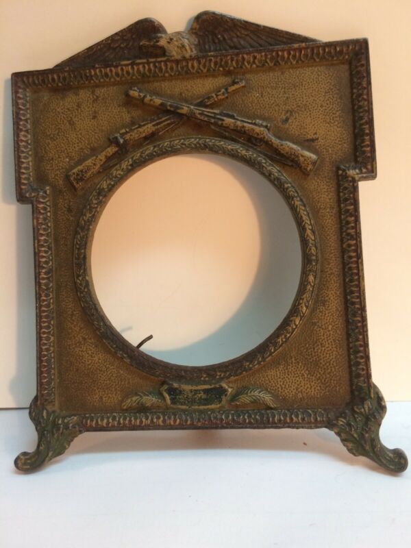 Antique 1917 WW1 Cast Iron Rifles & Eagle Picture Frame