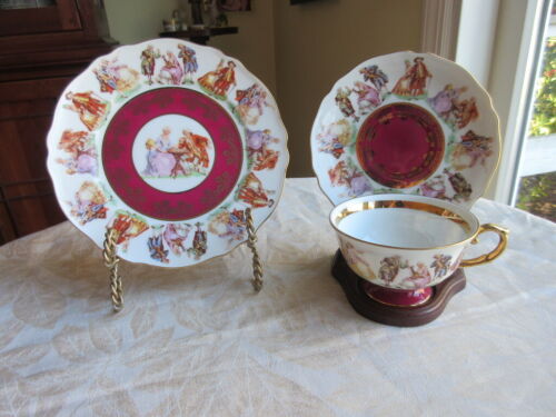 Vintage JKW Krautheim Bavaria Fragonard Love Story Trio Cup Saucer Plate - Red