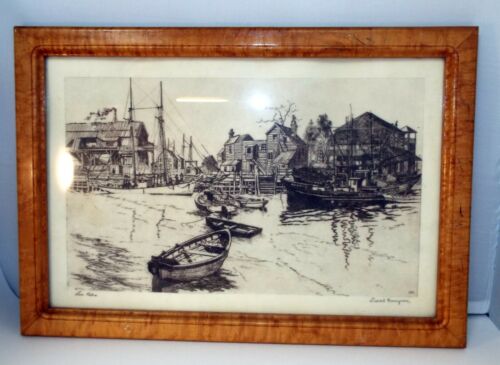 VINTAGE CURLEY MAPLE FRAME W/ LIONEL BARRYMORE ETCHING PRINT
