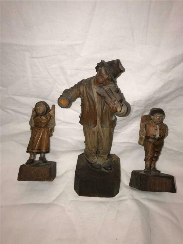 Title (ebay affiliate link): 3 Whimsical Vintage Wooden Carved Figurines - Boy - Girl - Man with Violin