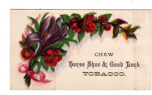 Title (ebay affiliate link): Horse Shoe and Good Luck tobacco Sprig of Purple & Red Flowers Vict Card c1880s