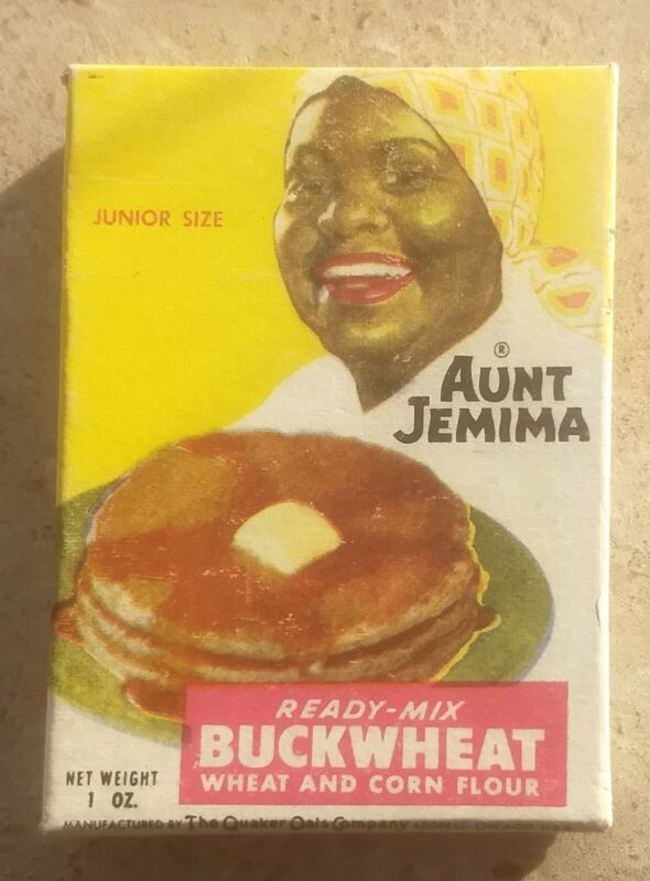 Title (ebay affiliate link): Full Aunt Jemima Buckwheat Pancake Mix Advertising Box Black Americana Junior...