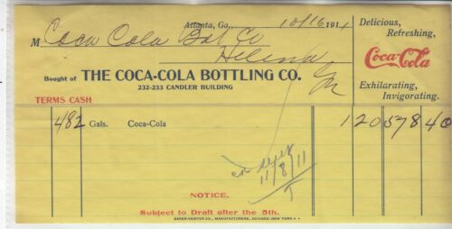 Title (ebay affiliate link): THE COCA-COLA BOTTLING CO. ATLANTA GA. INVOICE, Dated 1/16 1911 109 YEARS OLD